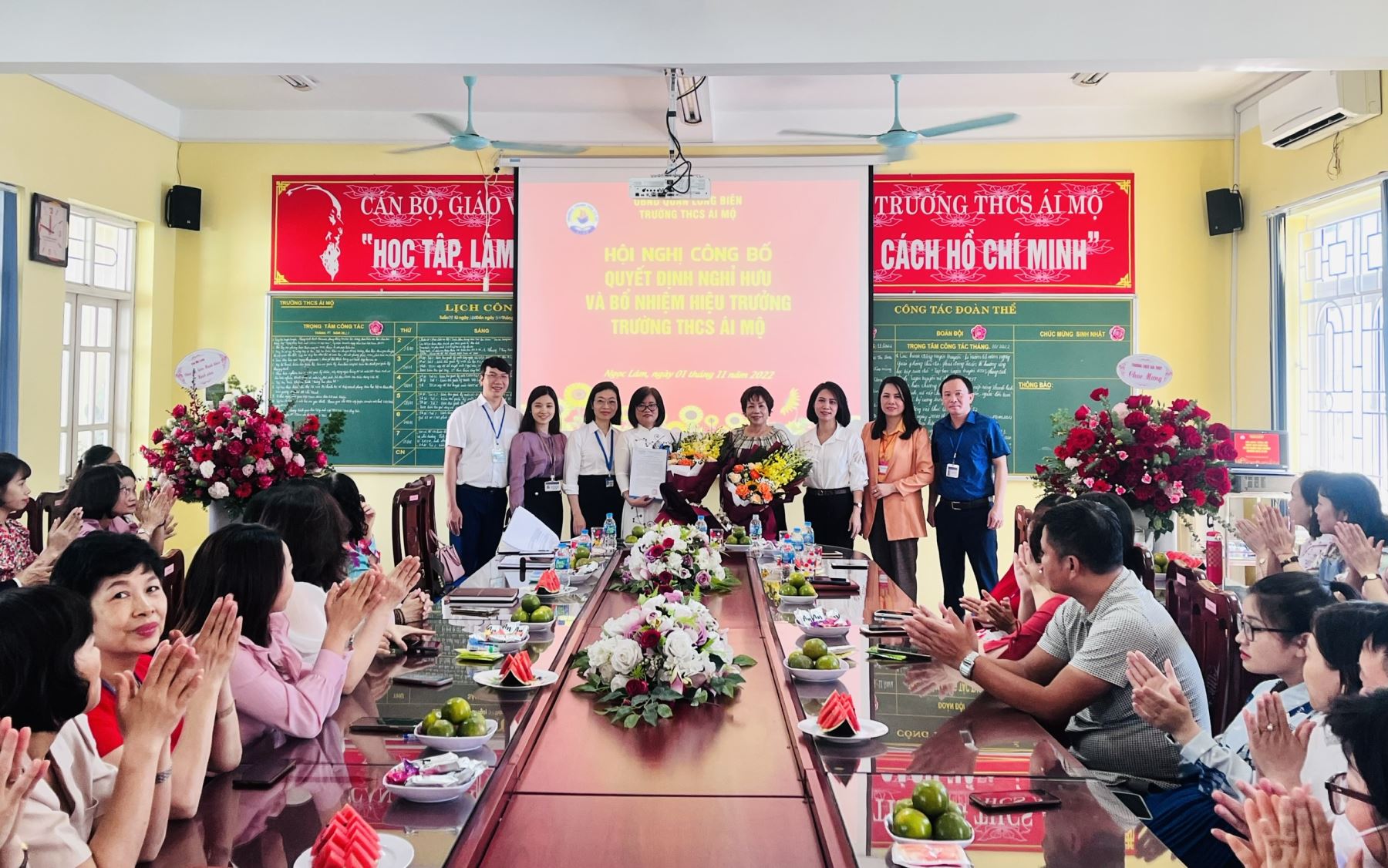 Cũng trong Hội nghị, đồng chí Nguyễn Thị Thu Hằng – Quận uỷ viên, Trưởng Phòng Nội vụ Quận Long Biên - thay mặt cho lãnh đạo Quận đã trao quyết định bổ nhiệm cho đồng chí Phạm Thị Hải Vân, Phó Hiệu trưởng trường THCS Gia Thụy về đảm nhiệm vị trí Hiệu trưởng trường THCS Ái Mộ thay đồng chí Ngô Thị Nga từ ngày 01 tháng 11 năm 2022.