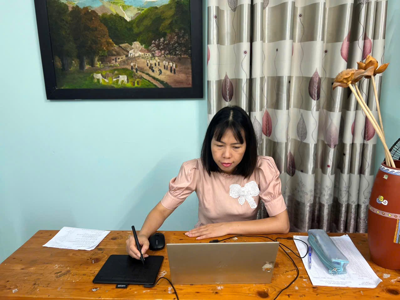 (Cô giáo Nguyễn Thị Kim Tuyến – giáo viên bộ môn Toán lên lớp giờ dạy trực tuyến)