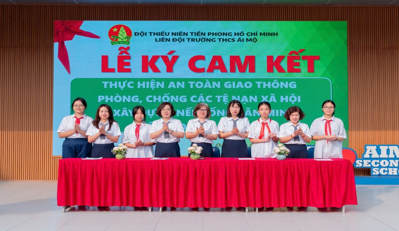 Tiếp nối chương trình là phần ký cam kết thực hiện an toàn giao thông, phòng chống tệ nạn xã hội và xây dựng nếp sống văn minh. Đây là hoạt động thường niên, thể hiện nét đẹp trong truyền thống giáo dục của Trường THCS Ái Mộ: giáo dục học sinh không chỉ giỏi kiến thức mà còn biết rèn luyện nhân cách, sống có trách nhiệm với bản thân và cộng đồng. Những bản cam kết được ký kết hôm nay như một lời hứa danh dự, nhắc nhở mỗi học sinh tự giác chấp hành luật giao thông, tránh xa các tệ nạn xã hội, giữ gìn nề nếp, kỷ luật và ứng xử văn minh trong mọi tình huống. Đây cũng là cách nhà trường gửi gắm thông điệp giáo dục sâu sắc: an toàn – kỷ luật – văn minh chính là nền tảng cho một môi trường học tập hạnh phúc, lành mạnh và bền vững.