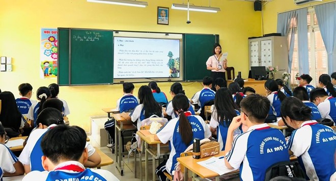 Tiết học được tổ chức sinh động với sự hỗ trợ của công nghệ thông tin, giúp học sinh vừa rèn luyện kỹ năng đọc hiểu thơ trữ tình lịch sử, vừa được khơi gợi cảm hứng sáng tạo. Qua đó, giờ học Văn không chỉ là bài học ngôn từ mà còn là hành trình nuôi dưỡng tâm hồn, tình yêu quê hương, đất nước – đúng với tinh thần đổi mới dạy học của Trường THCS Ái Mộ: “Học để hiểu, cảm để yêu, và sáng tạo để trưởng thành.”